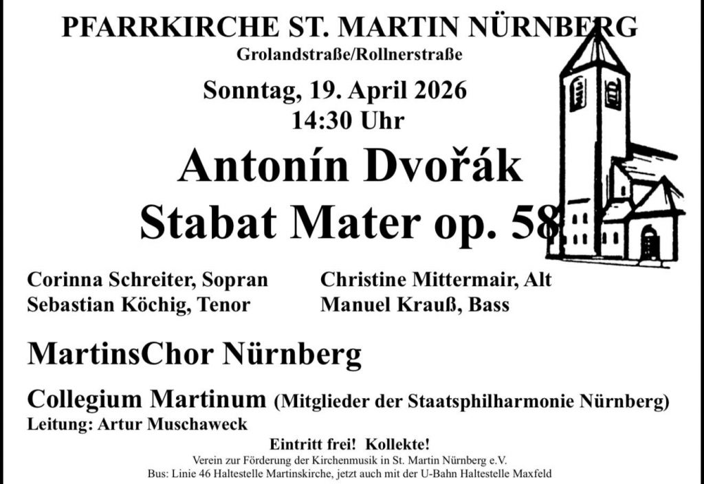 - 19. April 2026; 14:30Uhr: Antonín Dvořák, Stabat Mater op. 58